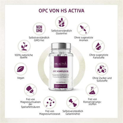 OPC Komplex 95 - Traubenkern & Pinienrinde + Curcuma und Bioperine (120 Kapseln)