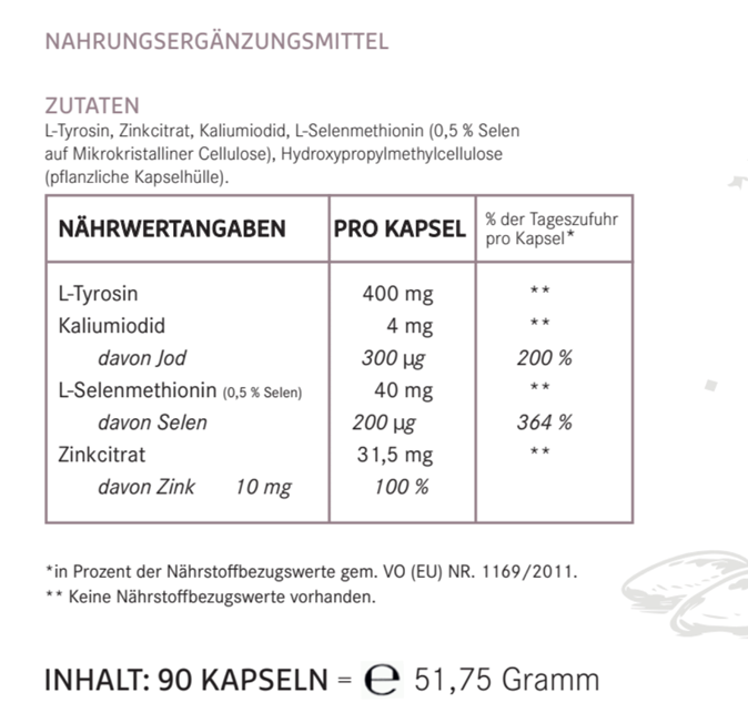 Das Problem mit den meisten Schilddrüsen-Präparaten im Handel: Sie decken nur einen Teil davon ab. Oft nur Jod. Manchmal Jod plus Selen. L-Tyrosin? Taucht fast nie auf.